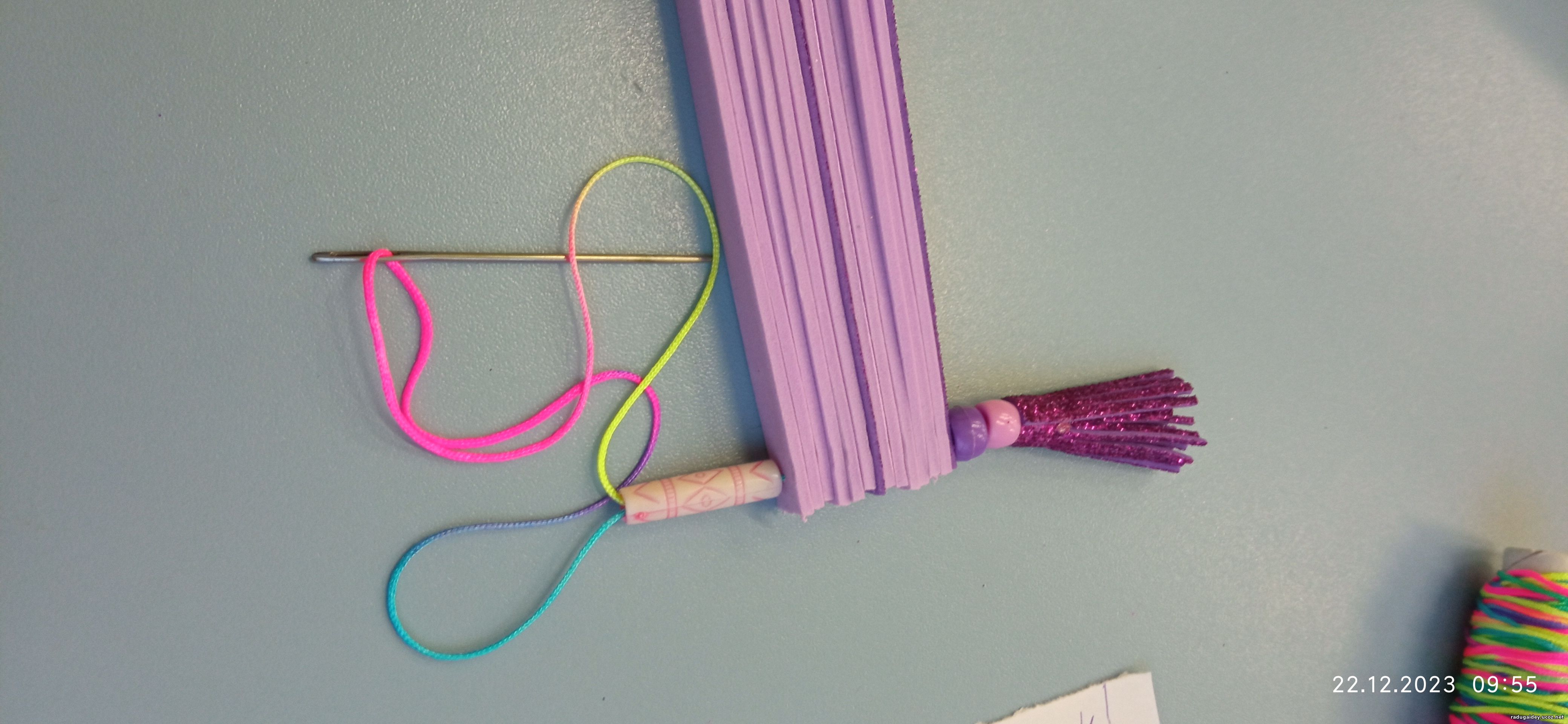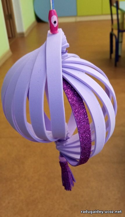 Теперь равномерно распределяем полоски, удаляем иглу и делаем узелок. Наш фонарик готов!