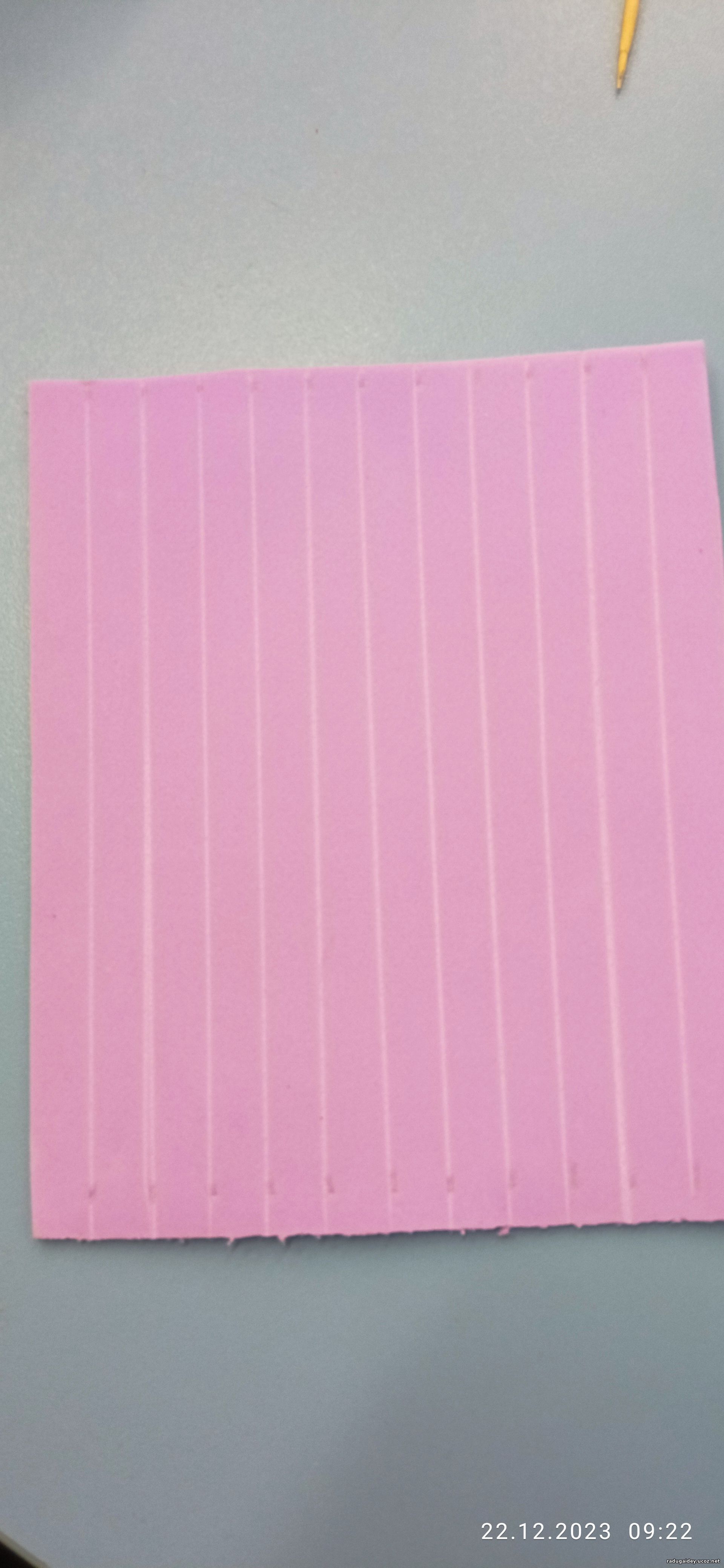 Далее прямоугольник 12х15 нарезаем на 12 полосок 15х1, складываем стопочкой глитерной стороной вверх и нанизываем от края на 0.5 см. Фоамиран очень легко прокалывается, поэтому можно нанизывать сразу несколько полосок, а после втулку или крупные бусины, чтобы фонарик получился не плоский, а вытянутый как ракушка.