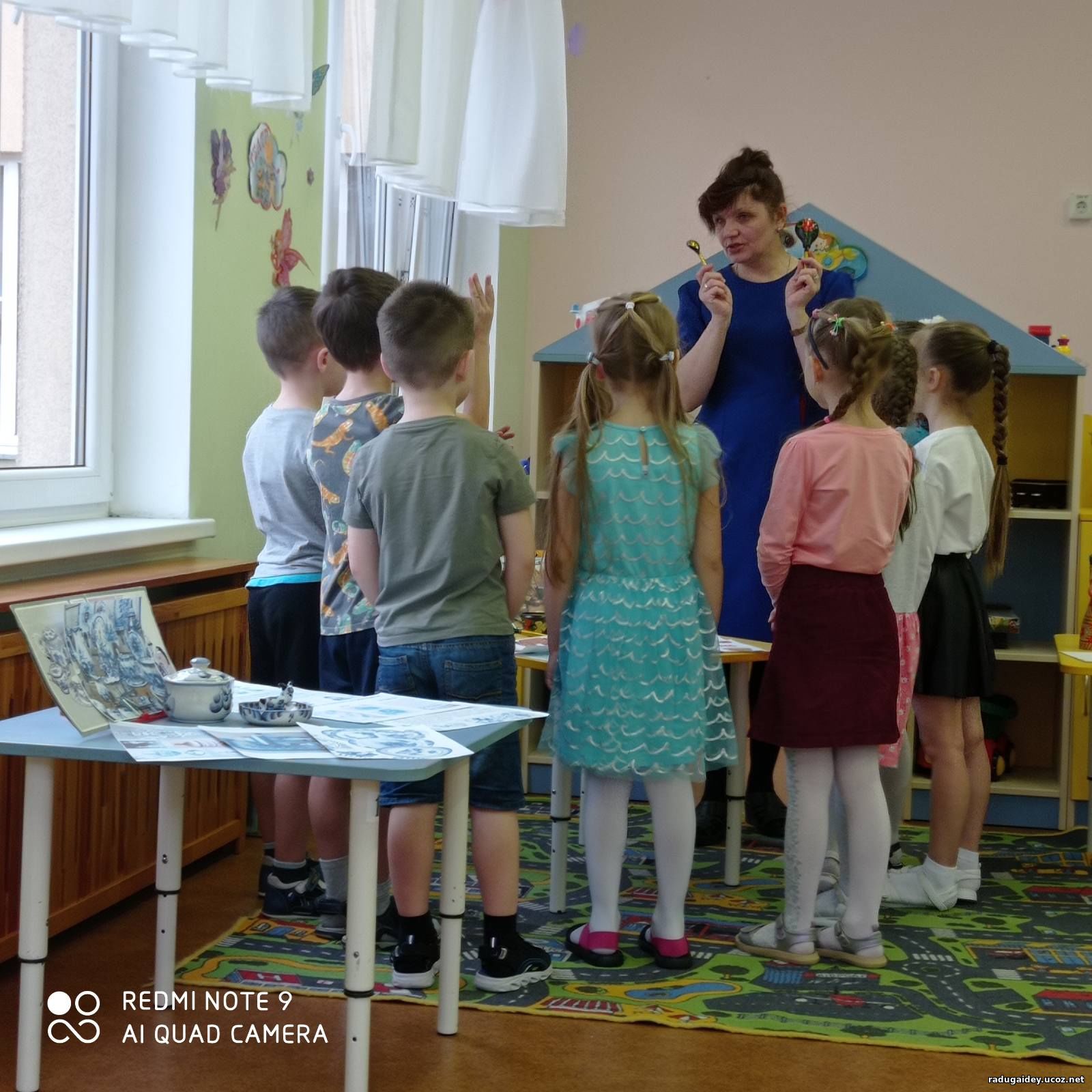 Воспитатель: Верно, молодцы! Дымковская игрушка — один из самых старинных промыслов России. Возникновение игрушки связывают с весенним праздником Свистунья, к которому население слободы Дымково лепило глиняные свистульки в виде коней, баранов, козлов, уточек.