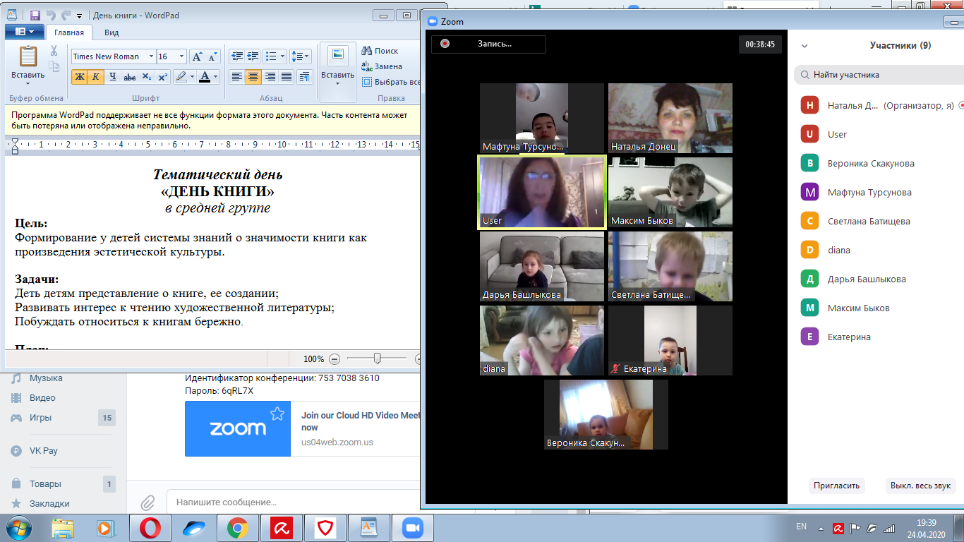 Вторая видео конференция проведена с пользой, провели беседу посвященную "Дню книги". Дети остались довольны.