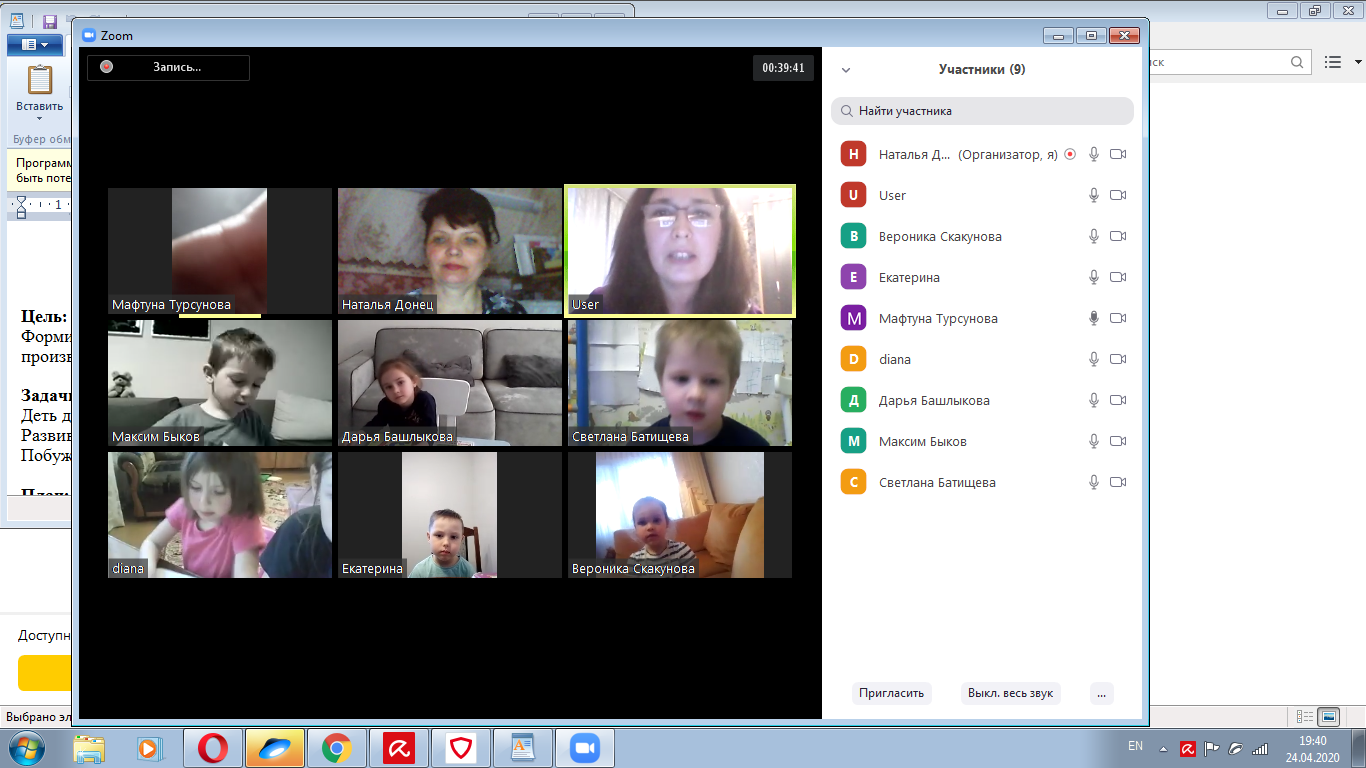 Пока вся страна находится в режиме вынужденной самоизоляции наша группа решила пообщаться в режиме конференции. Подсказка пришла сама, моя дочь обучается дистанционно со своими преподавателями из школы в ZOOM конференции. Пообщавшись с родителями, у которых уже заканчивается фантазия чем увлечь своих детей, особенно, когда нельзя выйти из дома. Проще тем, родителям, у которых есть дачи, дома или бабушки в деревне, а вот кто живет в квартирах? Сначала обменивались фото, а потом неожиданно пришла идея провести видео встречу и пообщаться, позже решили, что можно так же провести небольшие познавательные занятия, используя видео игры, лепку, кинезиологию, изо и т.д. и вот, наш первый опыт.