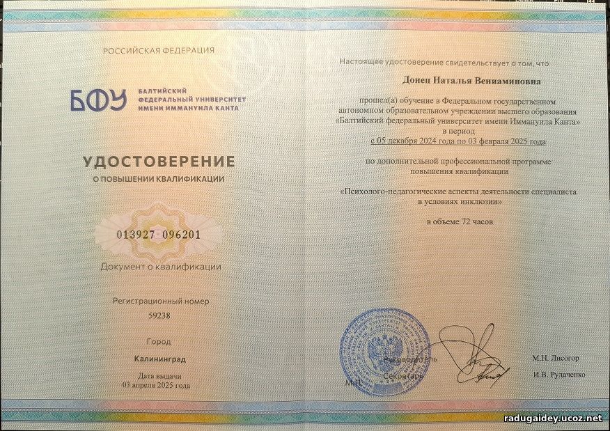 "Психолого-педагогические аспекты деятельности специалиста в условиях инклюзии"