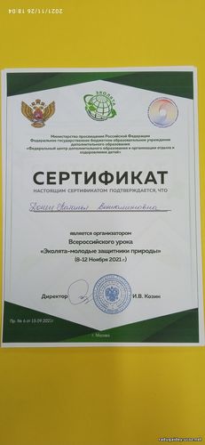 За подготовку участников к всероссийскому уроку "Эколята- молодые защитники природы"