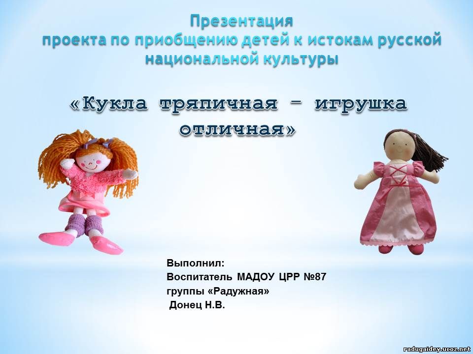 В преддверии проведения региональной благотворительной ярмарки" Свет Рождественской звезды" детям была показана презентация "Кукла тряпичная- игрушка отличная " Презентация знакомит детей с народным промыслом- изготовление игрушки, тряпичной куклы.